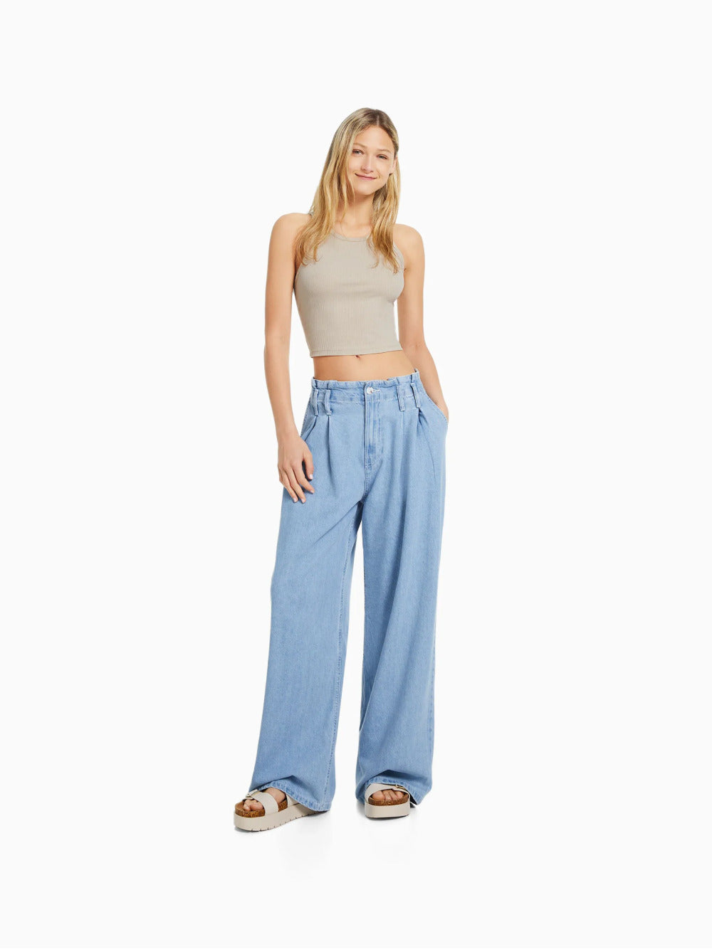 Sleeveless ribbed T-shirt